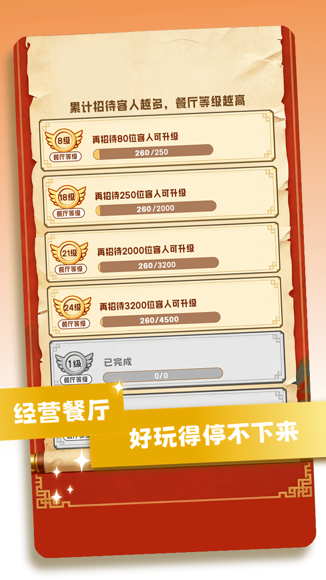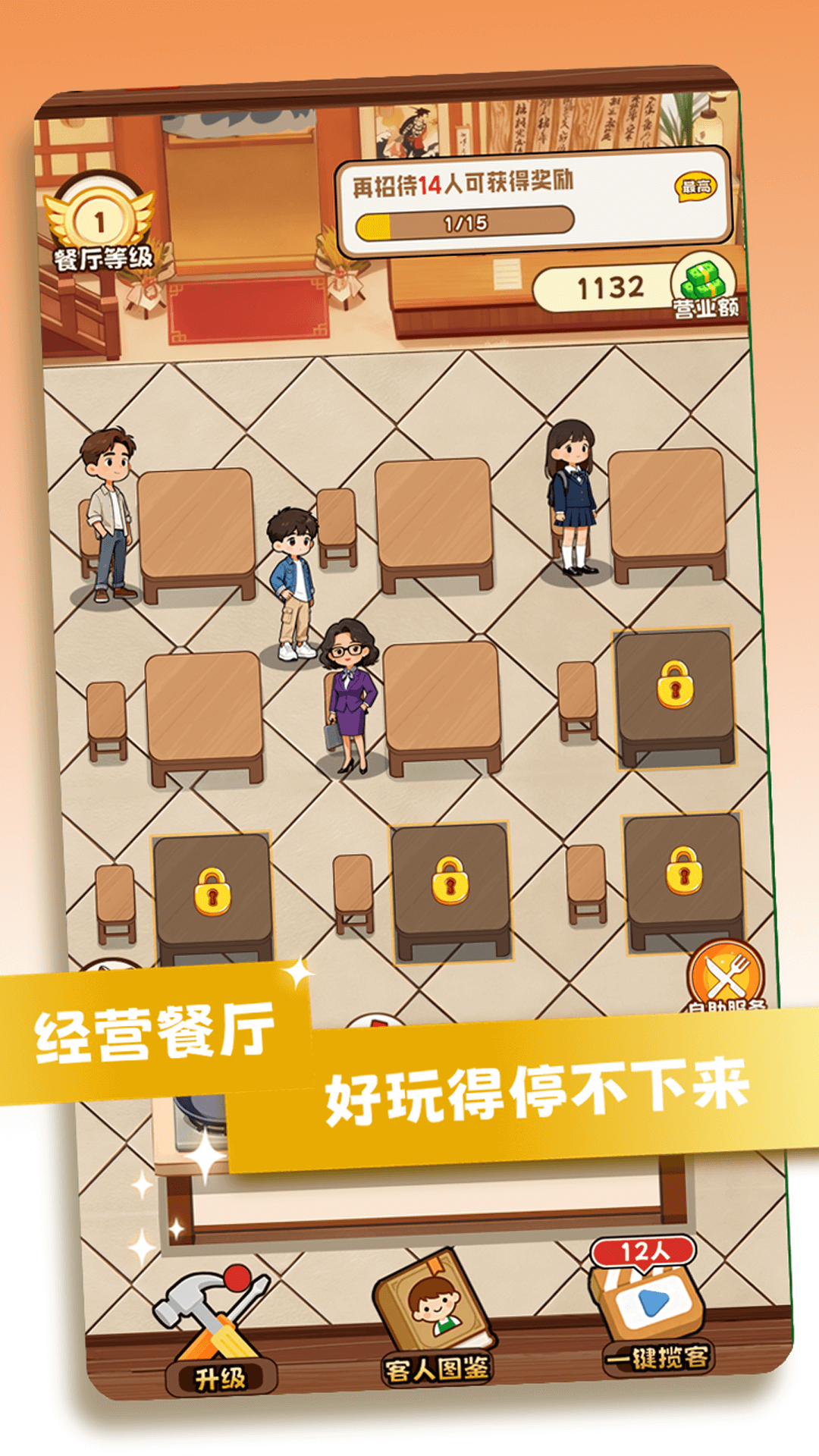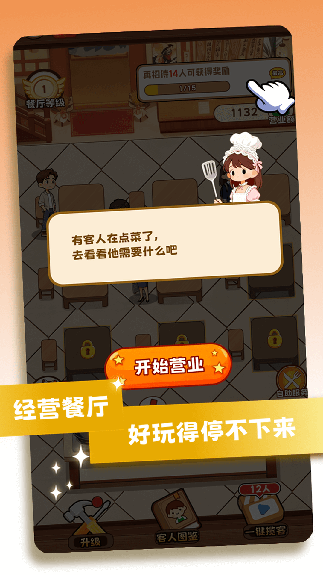 客人随机点单,点击翻炒,出锅后上菜,客人吃完按消费额结算,翻台越快赚越多,模拟真实营收逻辑,桌损了去修补、桌面脏了擦干清洁,完成“修桌”“餐后收拾”等任务,额外领小额红包,积少成多,累计红包满足够金额秒提微信,边玩经营边赚零花,碎片时间不浪费。